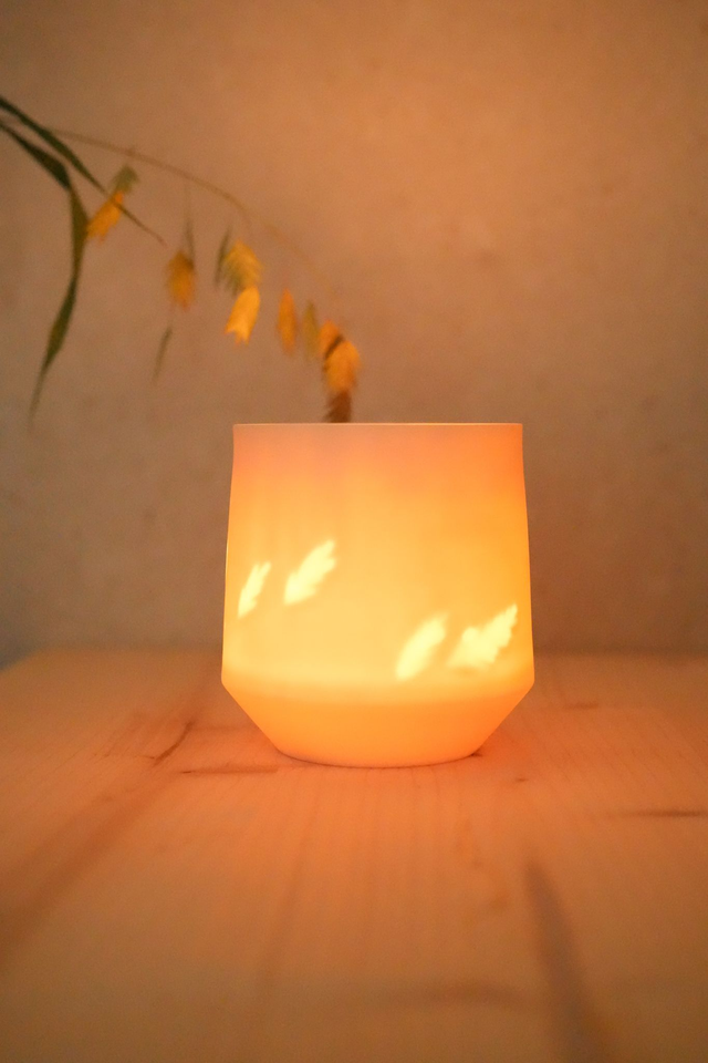 INHALT: Ein Ginkgo Licht - Höhe ca. 9 cm // Durchmesser Oberkante ca. 8 cm - inkl. Teelicht für den ersten Gebrauch und individueller Postkarte von Sophie Gestrich. Die Dekoration kann von der Abbildung abweichen, Wunschpostkarte nach Bedarf gern der Bestellung als Notiz hinzufügen.