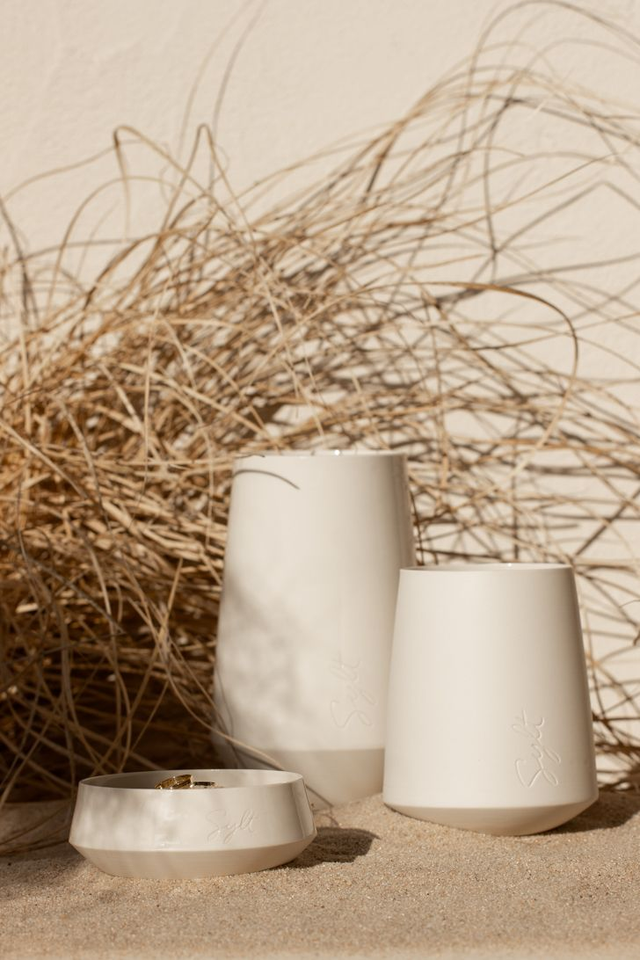 Gegossenes Porzellan wird im Prozess mit zarten Dekoren verfeinert, ein zeitloses modernes Design wird dadurch geschaffen. Der besondere Charakter der Lichter bleibt auf den ersten Blick verborgen, offenbart sich jedoch bei Dunkelheit, sobald im Inneren eine Kerze erhellt. Variable Dekore bereichern diese Serie - die den Sommer auf schönste Weise einfängt. Ergänzt wird diese Serie durch eine Vasenform und zarte Ringschalen.